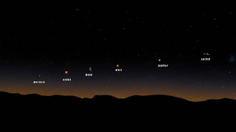 “Gezegen Geçidi” olarak adlandırılan bu astronomik olay sırasında Merkür, Venüs, Jüpiter, Satürn, Uranüs ve Neptün, Dünya’dan bakıldığında aynı doğrultuda sıralanmış gibi görünecek.