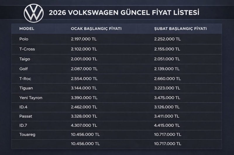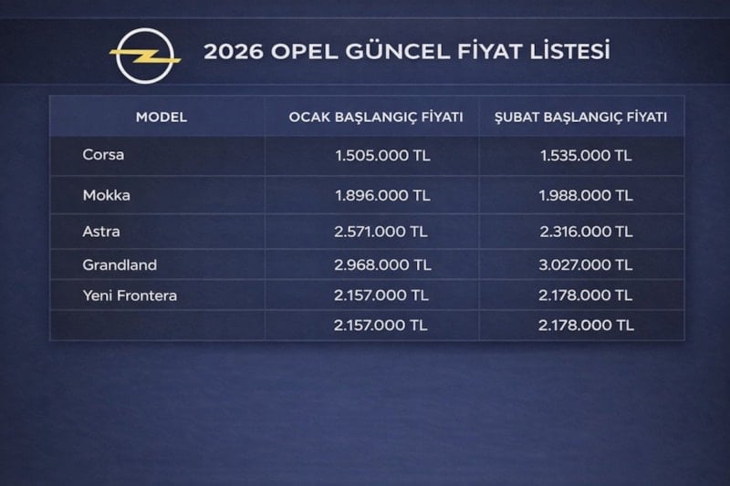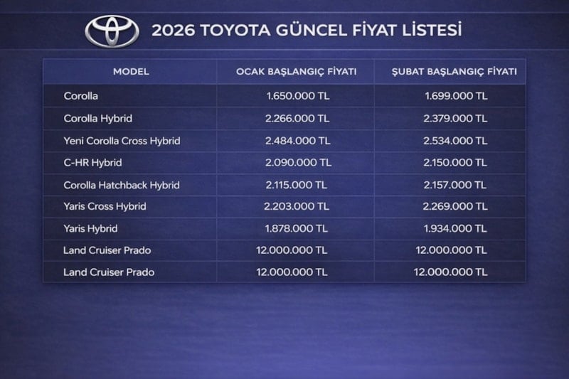 Toyota, Opel, Volkswagen ve Peugeot başta olmak üzere Türkiye’de en çok tercih edilen markalar, 2026 model sıfır otomobiller için Ocak ve Şubat ayı başlangıç fiyatlarını açıkladı.