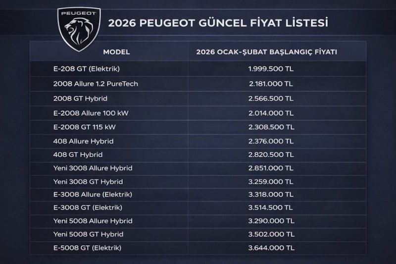 Sıfır otomobil almak isteyenler için marka marka güncel fiyat listeleri 2026 yılı için belli oldu. İşte, Toyota, Opel, Volkswagen, Peugeot sıfır araç fiyatları...