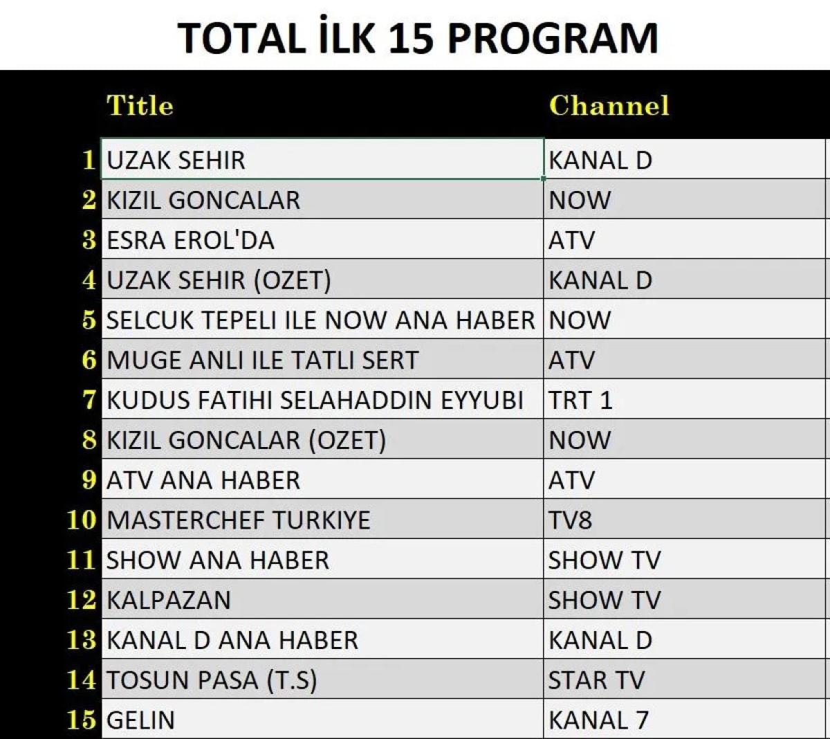 Kanal D’nin yeni dizisi Uzak Şehir, Total ve ABC gruplarında ilk sırada yer aldı.
