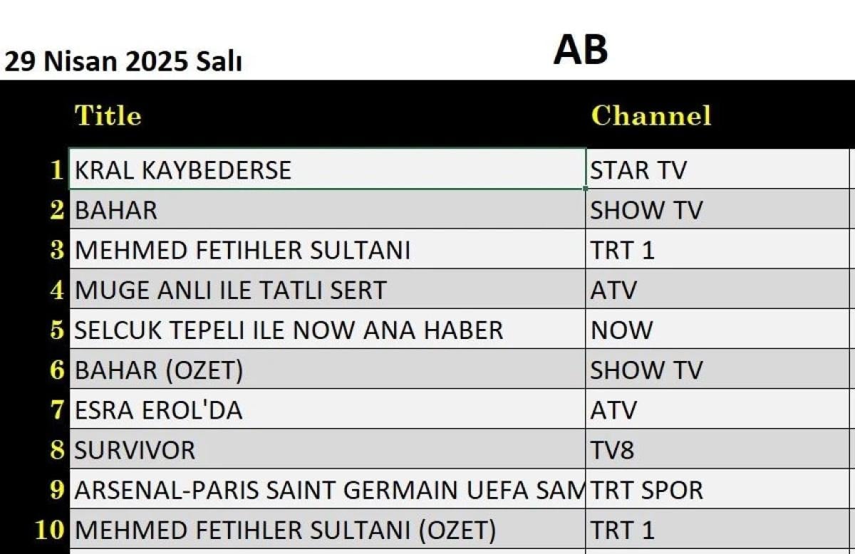 AB grubunda ise zirveyi Kral Kaybederse kaptı. İkinci sıraya Bahar dizisi, üçüncü sıraya ise Mehmed Fetihler Sultanı yerleşti.