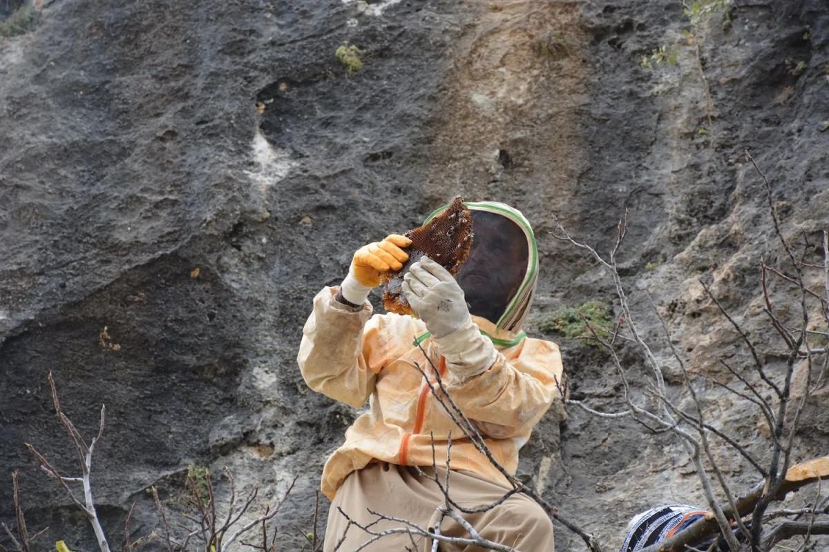 Sayır, " Kaya balı kolay elde edilen bir ürün değil. Buradan 3-4 kilogram bal çıkardık. Kaya balının kilogramı 5 bin lira. Yıllardır dağları dolaşarak geçimimi bu şekilde sağlıyorum. Burada çok kaliteli ve farklı bir bal elde ediyoruz. Yaylalarımızda kaya balı var ve burayı tekrar görmekten mutluyuz." ifadelerini kullandı.