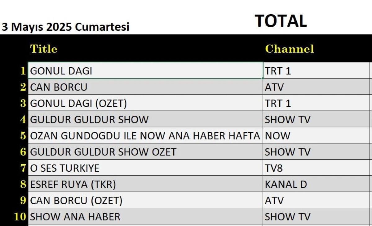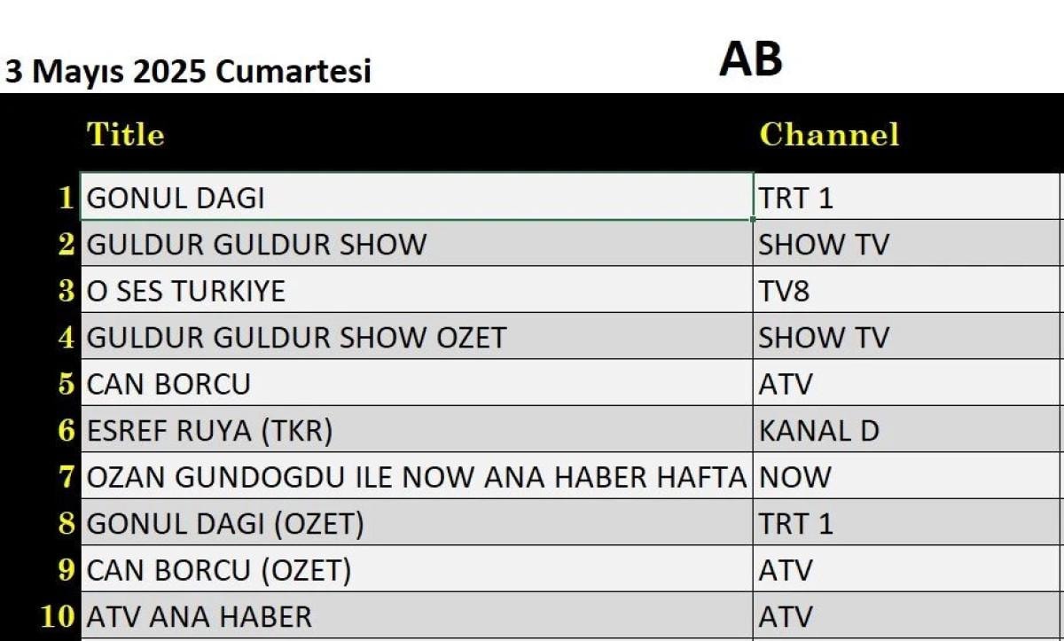 3 MAYIS CUMARTESİ REYTİNG SONUÇLARI