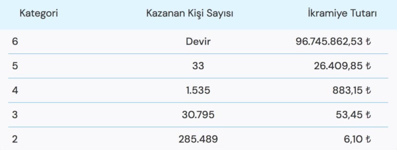 İşte bu akşam gerçekleştirilen çekiliş sonuçlarına göre ikramiye kazanan kişi sayısı ve kazandıkları ikramiye miktarları..