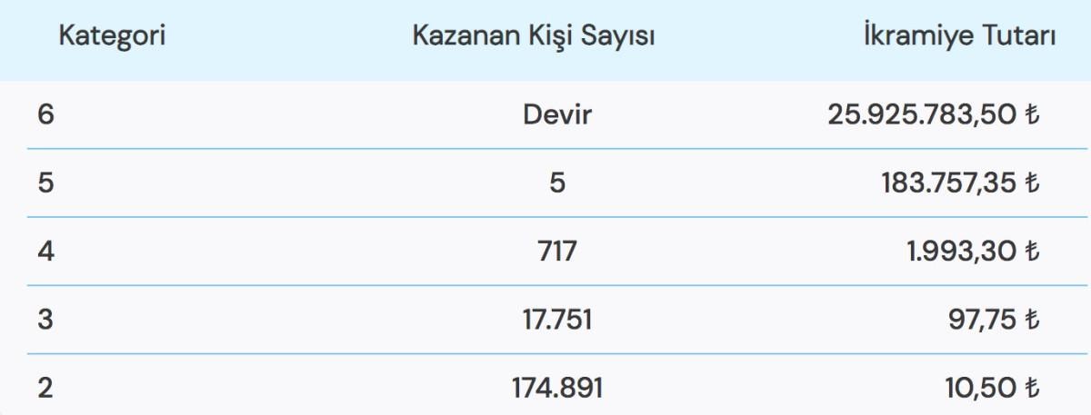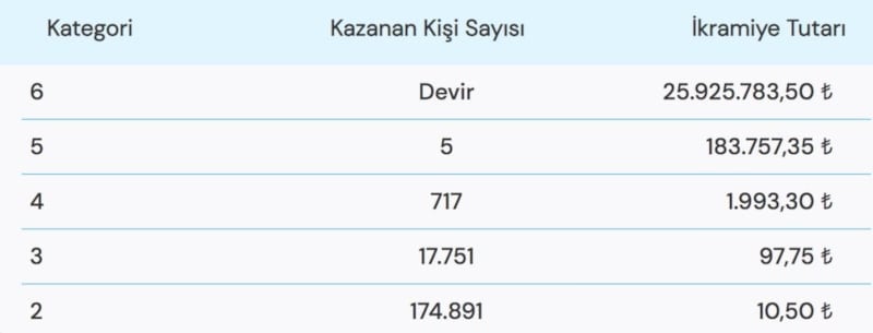İşte çekiliş sonuçlarına göre ikramiye kazanan kişi sayısı ve kazandıkları ödül miktarı..