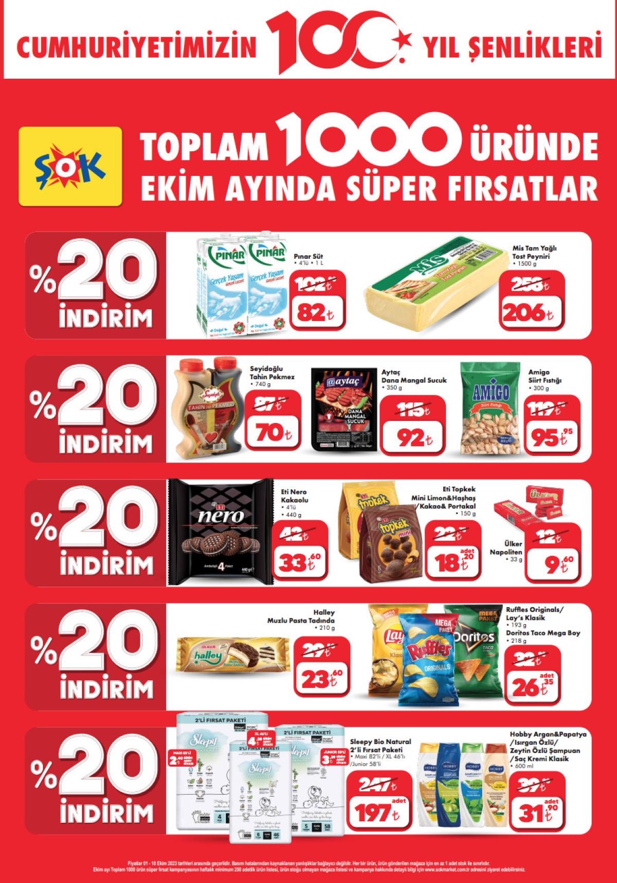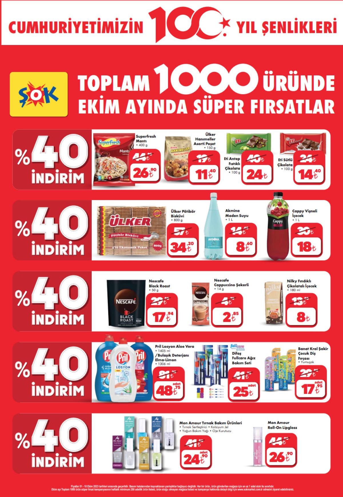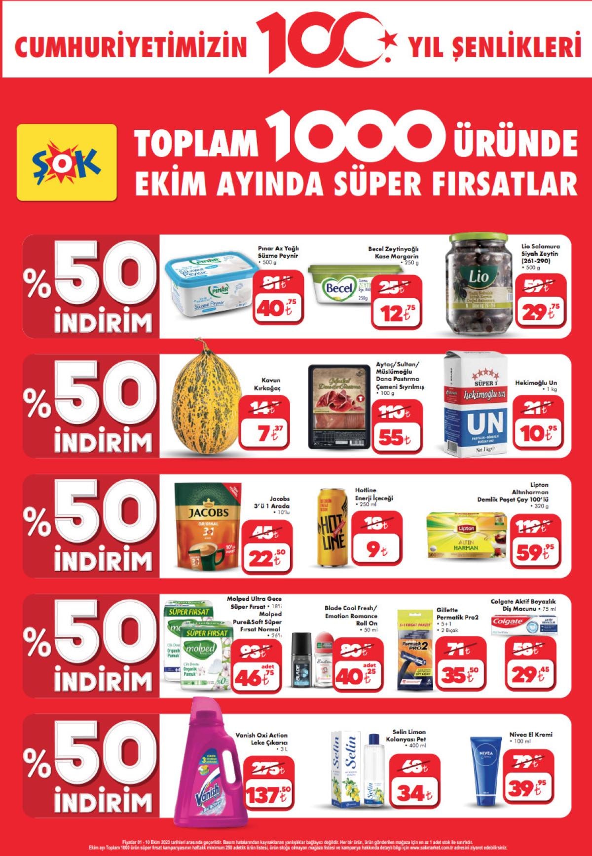 ŞOK marketler zinciri ayrıca Cumhuriyetin 100. yılı sebebiyle ekim ayı boyunca birçok üründe %50'ye varan indirimler yapacak.
