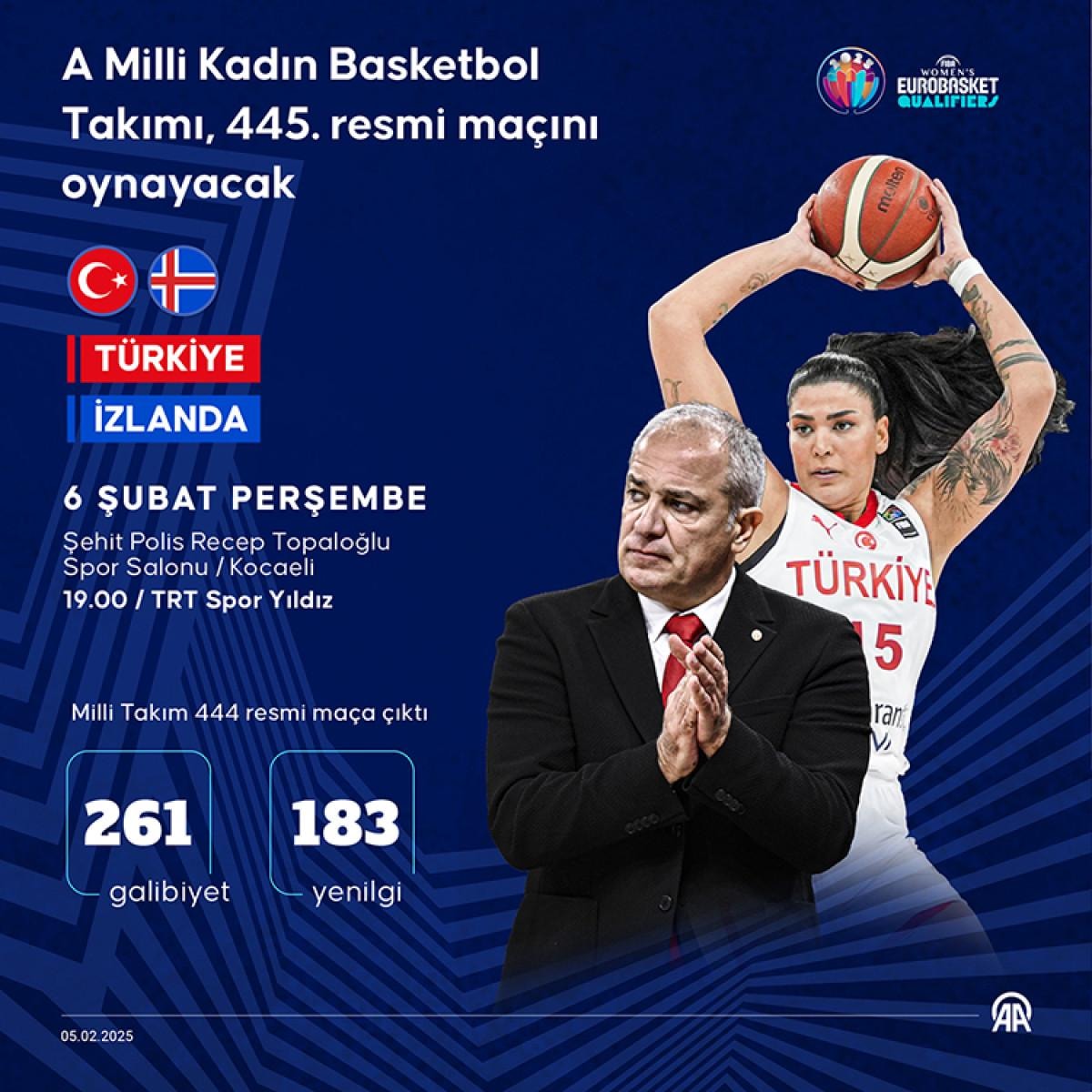 A Milli Kadın Basketbol Takımı, 2025 Avrupa Şampiyonası Elemeleri F Grubu 5. maçında İzlanda'yı ağırlayacak.