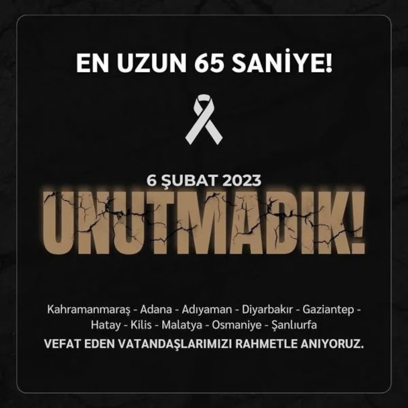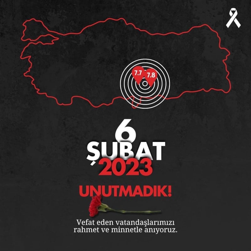 "6 Şubat’ı unutmuyoruz, acısı kalbimizde. Hayatını kaybedenlere rahmet, geride kalanlara başsağlığı diliyoruz.”