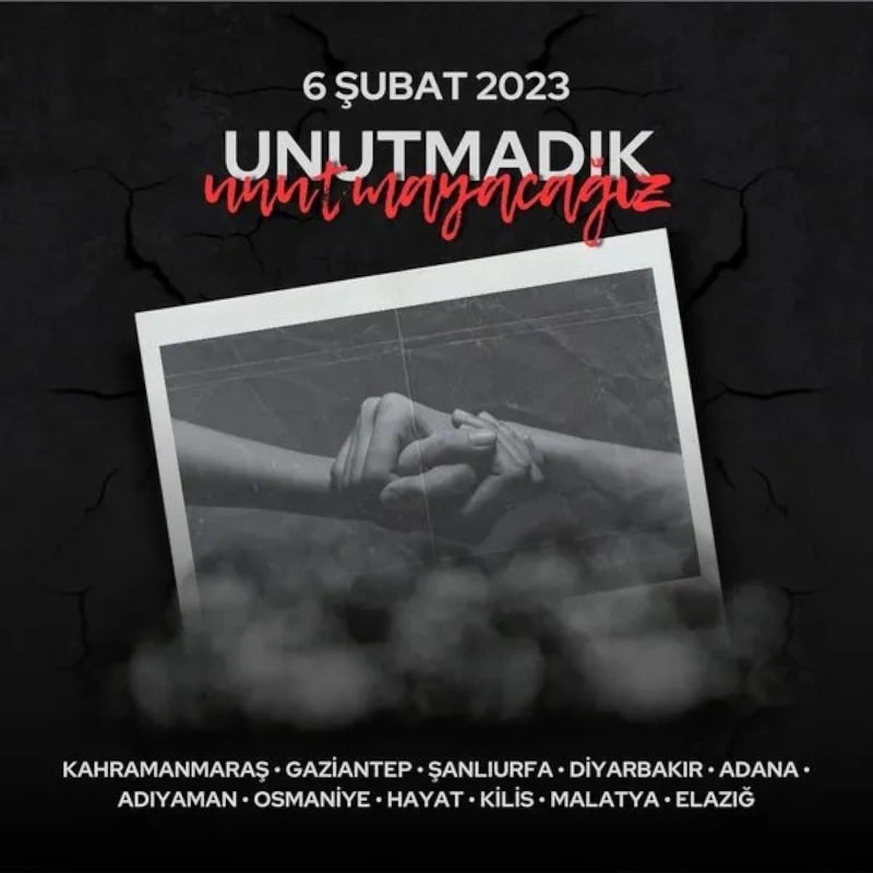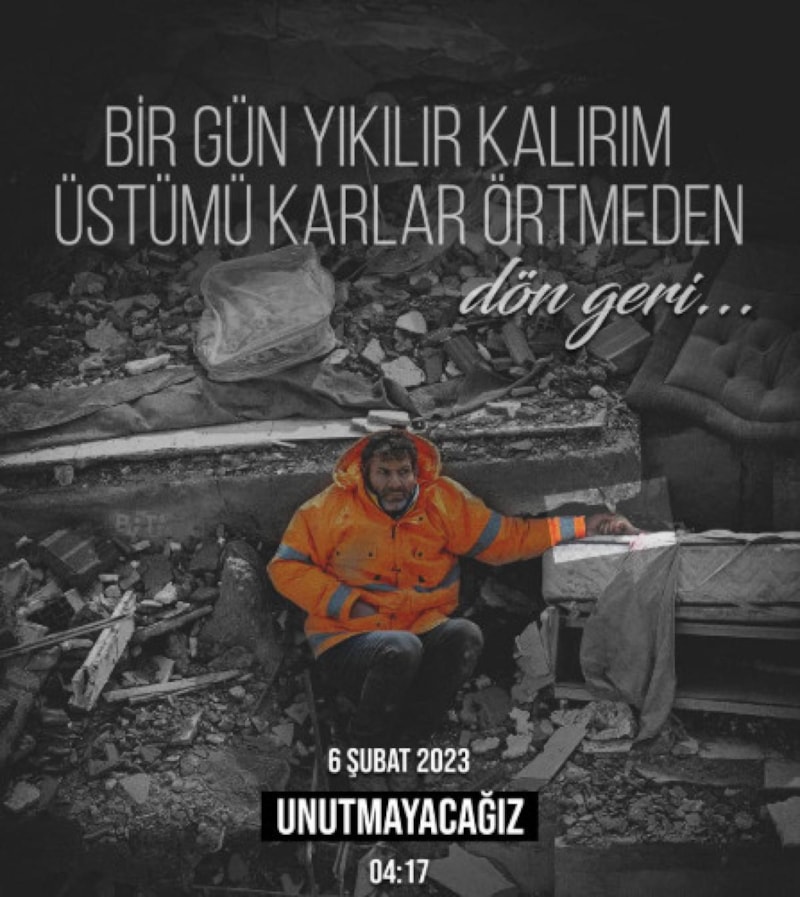 "Acımız hala taze, kaybettiklerimizi unutmadık, unutmayacağız. 6 Şubat’ta hayatını kaybeden tüm canlarımıza rahmet, geride kalanlara sabır diliyoruz.”