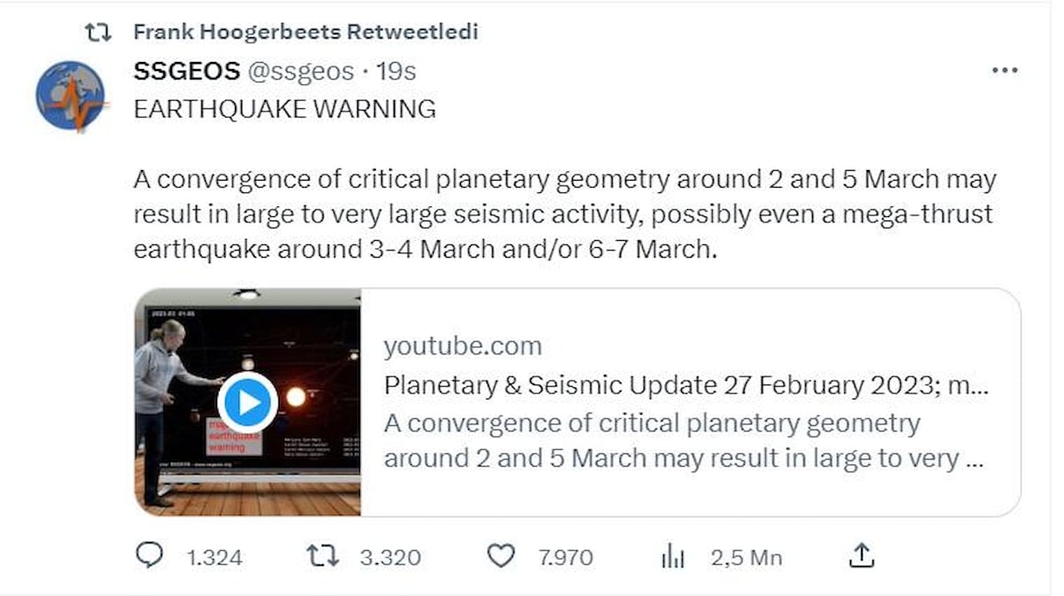 Sözlerine devam eden Hoogerbeets, "Mart ayının bu ilk haftasında büyüklüğü 6'nın çok üzerinde olan birden fazla sismik olay olabilir. Bilmenin bir yolu yok. Yine 7'nin çok üzerinde, 8'in çok üzerinde bir sismik olay olabilir." uyarısında bulundu.