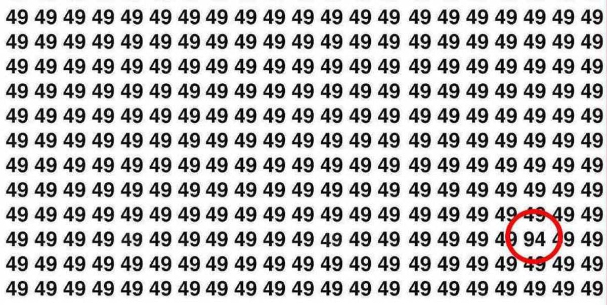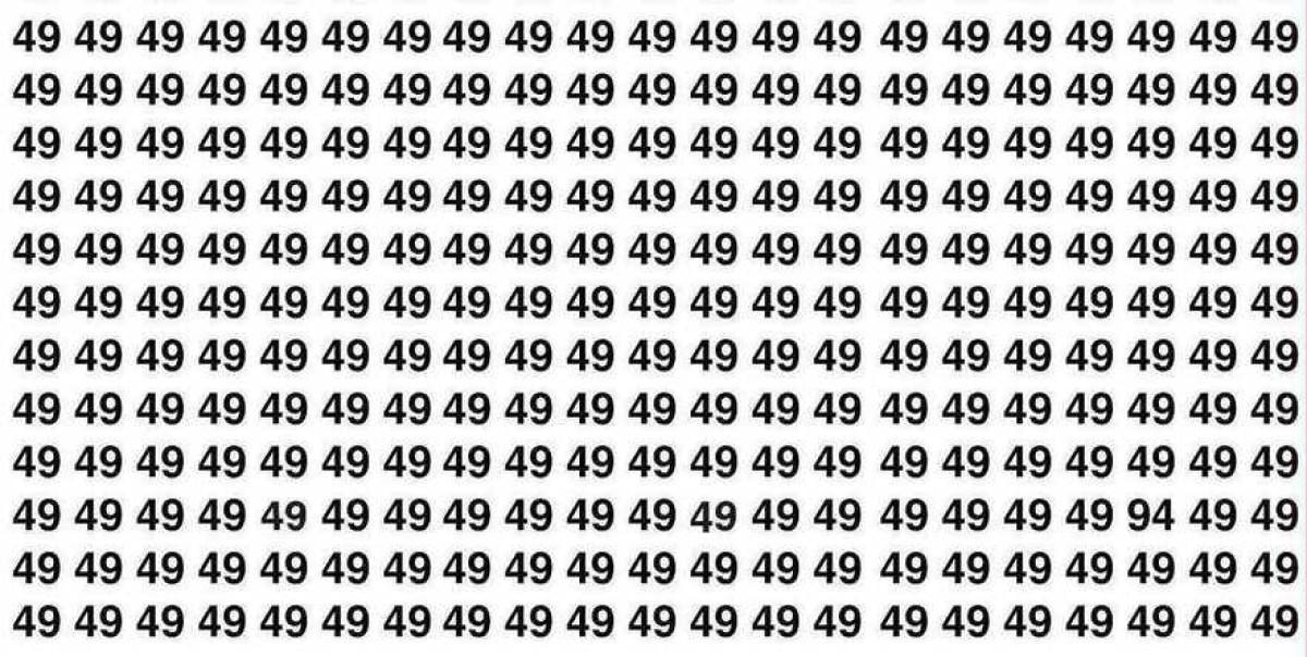 Bu görsel illüzyon mücadelesinde, 49 sayılarının arasına ustaca gizlenmiş 94 sayısı 7 saniye içinde bulmanız isteniyor.