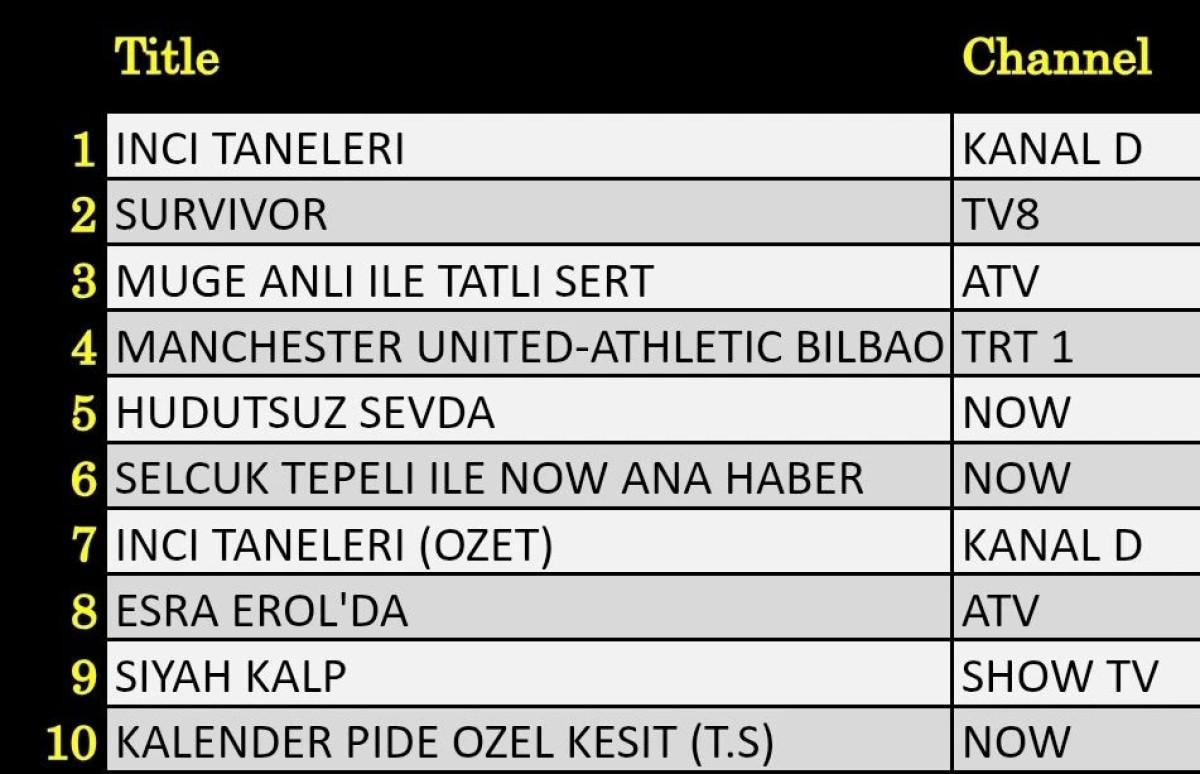 İzleyiciler, dün akşamın reyting sonuçlarını merak ediyor. Peki dün akşam en çok izlenen dizi ve programlar hangileri?