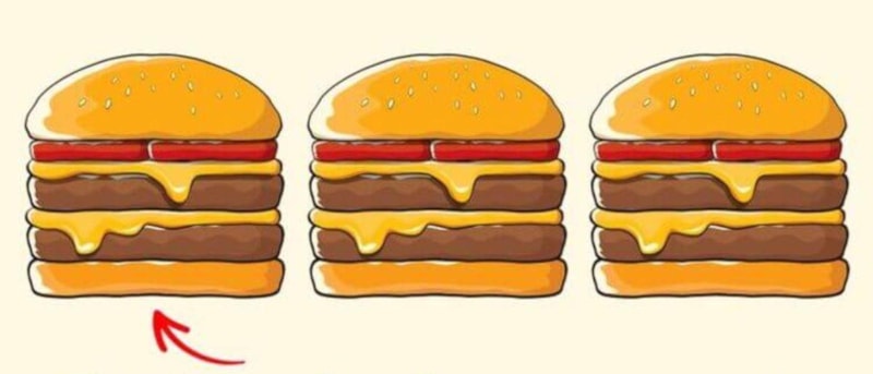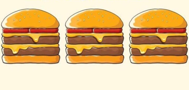 Yukarıdaki resimde görünüşte birbirinin aynı olan üç burger göreceksiniz. Ancak bu burgerlerden biri diğer ikisinden biraz farklı.