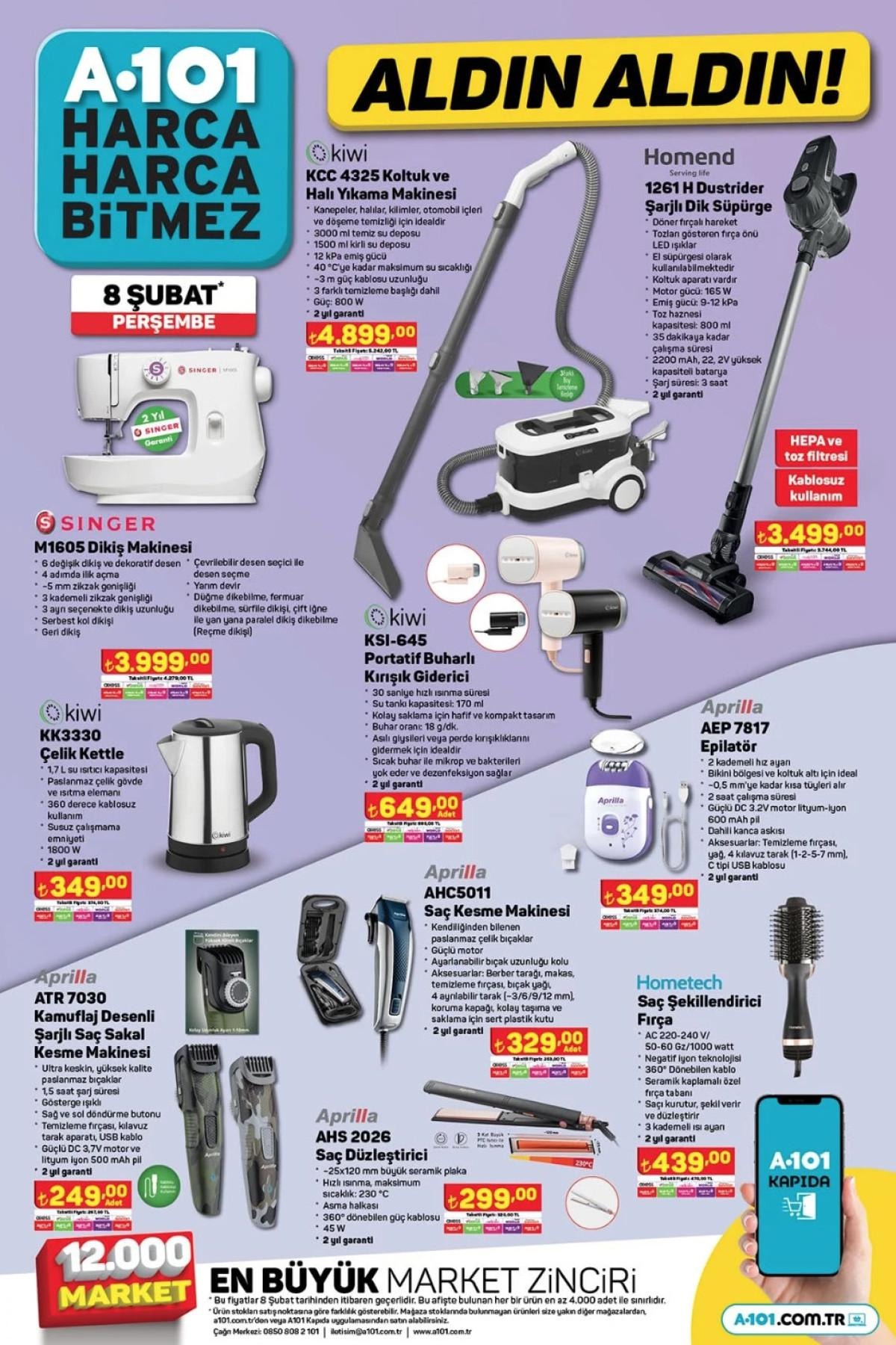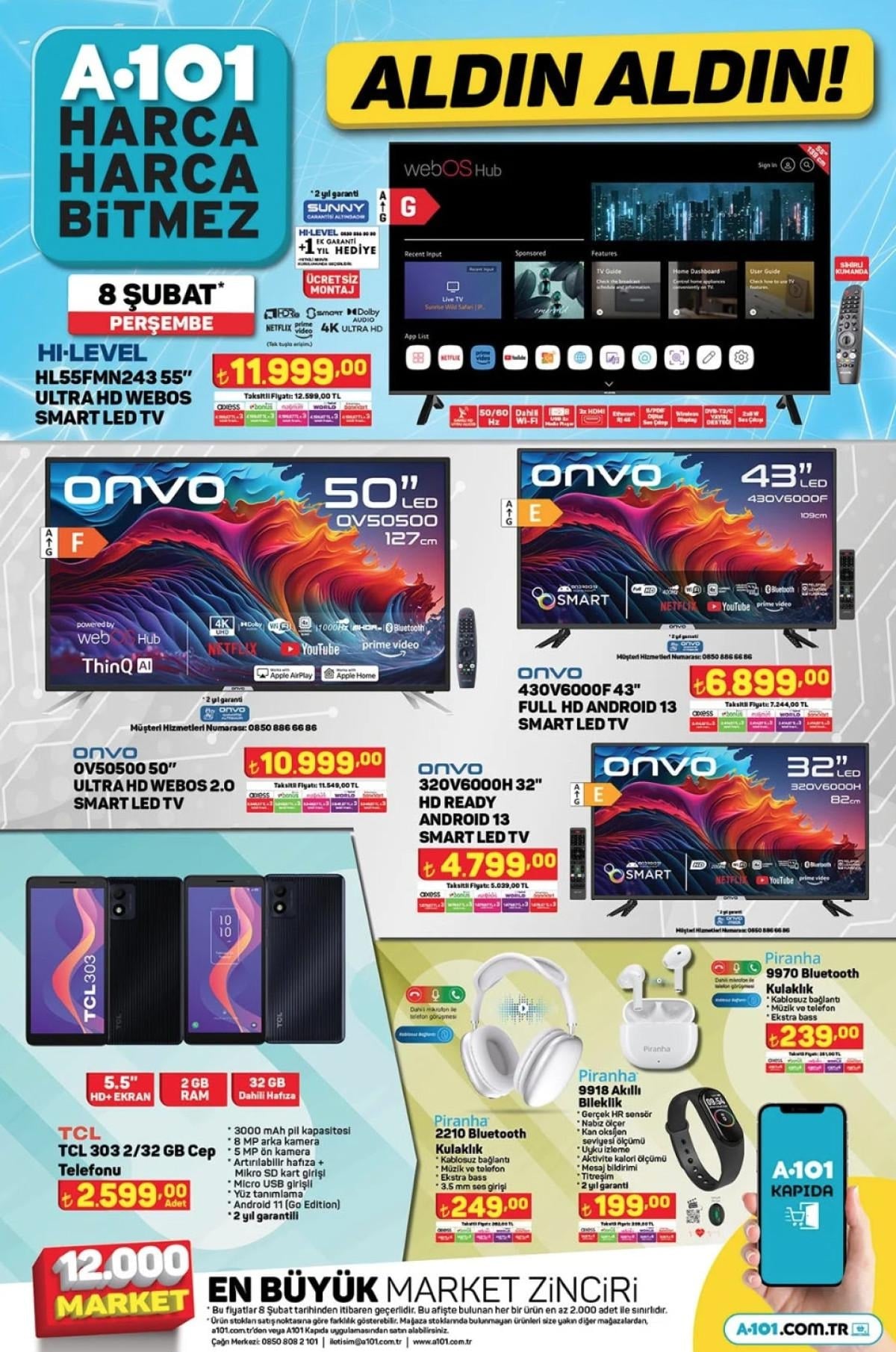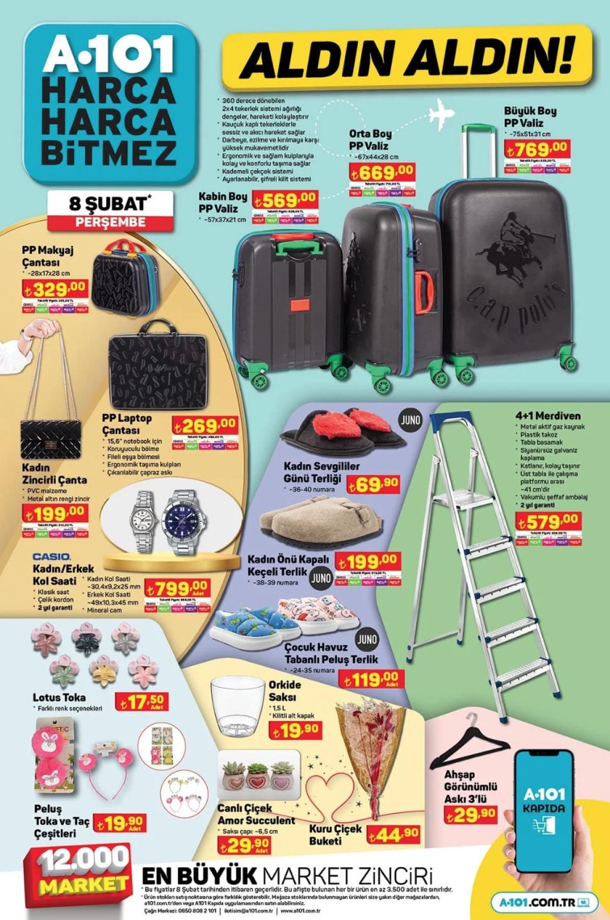 İşte 8 Şubat Perşembe A101 aldın aldın kataloğu ve indirimli ürünler kataloğu..