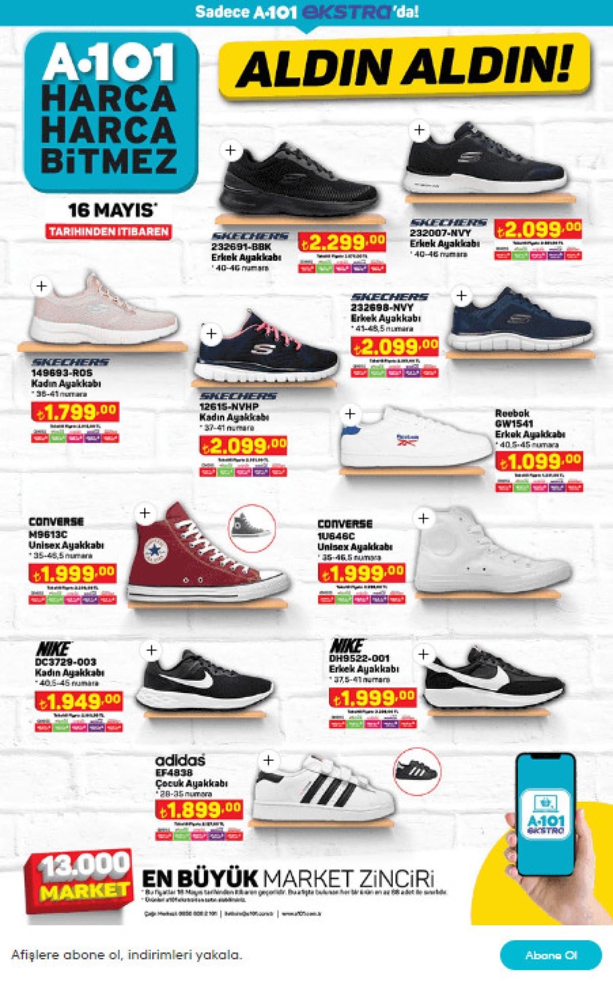 Siz de 16 Mayıs'tan itibaren A101 mağazalarına uğrayarak, yeni indirim dönemindeki ayakkabı fırsatlarını kaçırmayın!