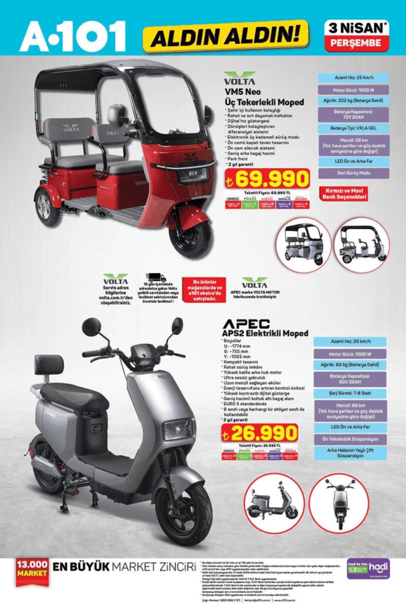 Üç tekerlekli mopeddan, çok amaçlı aktivite koltuğuna, overlok makinesinden halı yıkama makinesine kadar birçok farklı kategoride ürünler uygun fiyatlarla satışa sunulacak.