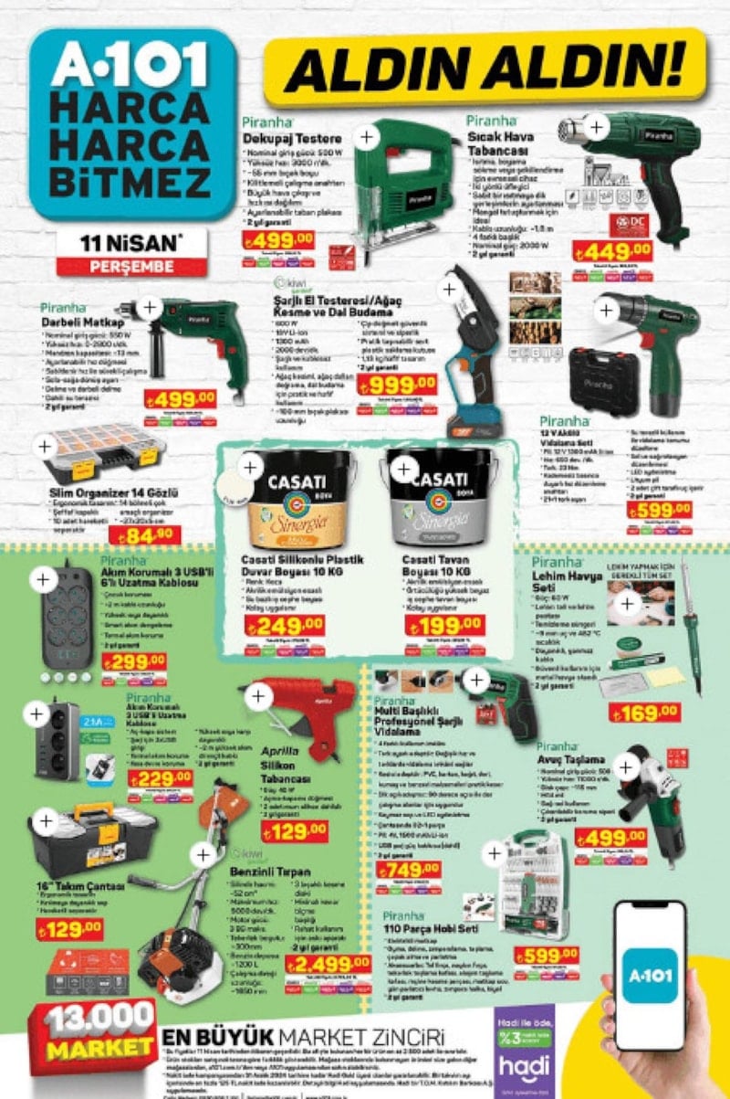 Eğer siz de evinizde bir tamir işi düşünüyorsanız, bahçenizi güzelleştirmek istiyorsanız, A101'in 11 Nisan 2024 indirimli ürünler listesine göz atabilirsiniz.