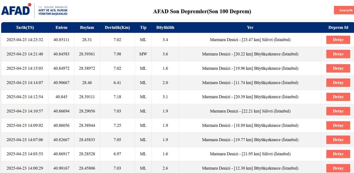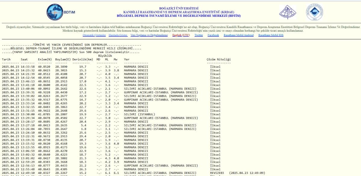 İşte 23 Nisan deprem sorgulama ekranı...