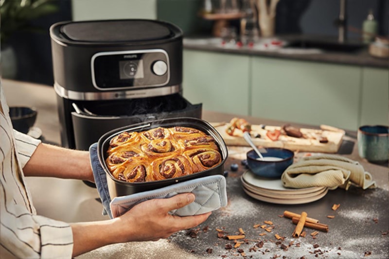 Kek, börek, kurabiye gibi hamur işlerini pişirebilir. Fırın yerine kullanılabilir ve daha hızlı pişirme süresi sunar.