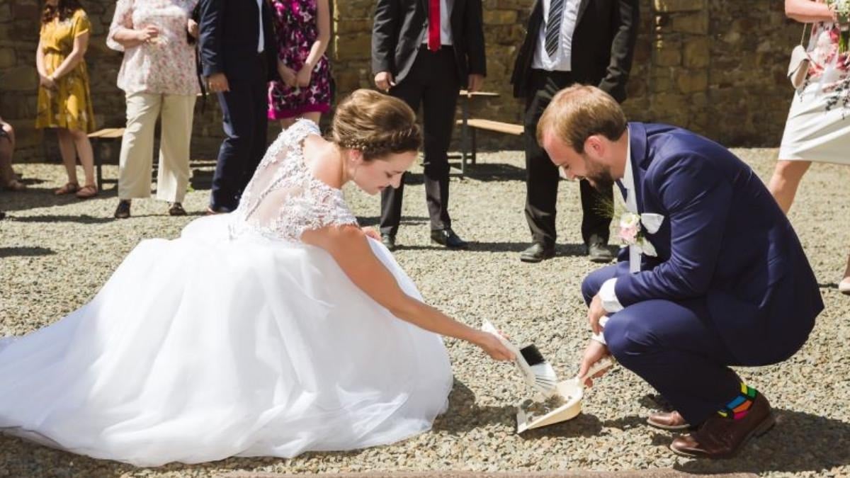 Gelin ve damat, birlikte süpürdükleri kırıklarla, evlilik hayatında karşılaşacakları zorlukları el ele aşacaklarını sembolize ediyor. Bu gelenek Almanya’da hala birçok çift tarafından yaşatılıyor.