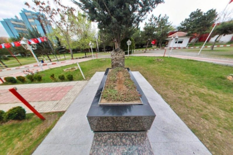 Granit mermerden hazırlanan mezar taşında Türkeş'in doğum tarihi 1917 olarak yazılırken, ölüm tarihi ise boş bırakıldı.