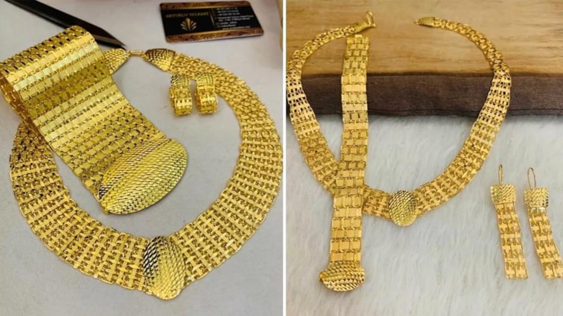 Bu takılar, altın görünümüyle dikkat çekiyor ve görsel olarak oldukça çarpıcı.