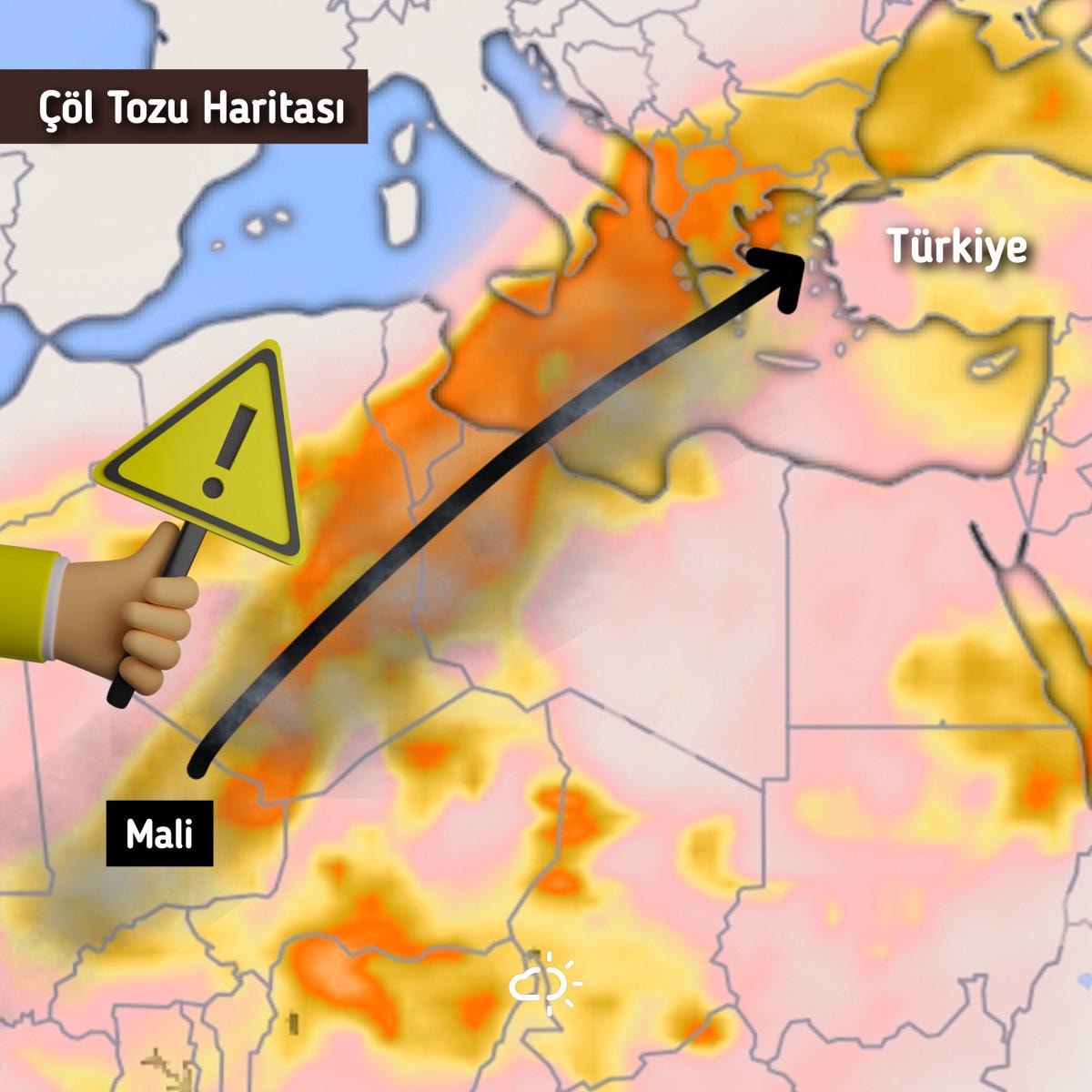"Son Dakika | Mali'den ülkemize yoğun bir çöl tozu geliyor. Yeni haftada havamız tozlu olacak. Araba yıkamayın, cam silmeyin. Yağış alan yerlerde çamur yağacak. Hava kalitemiz düşecek..."