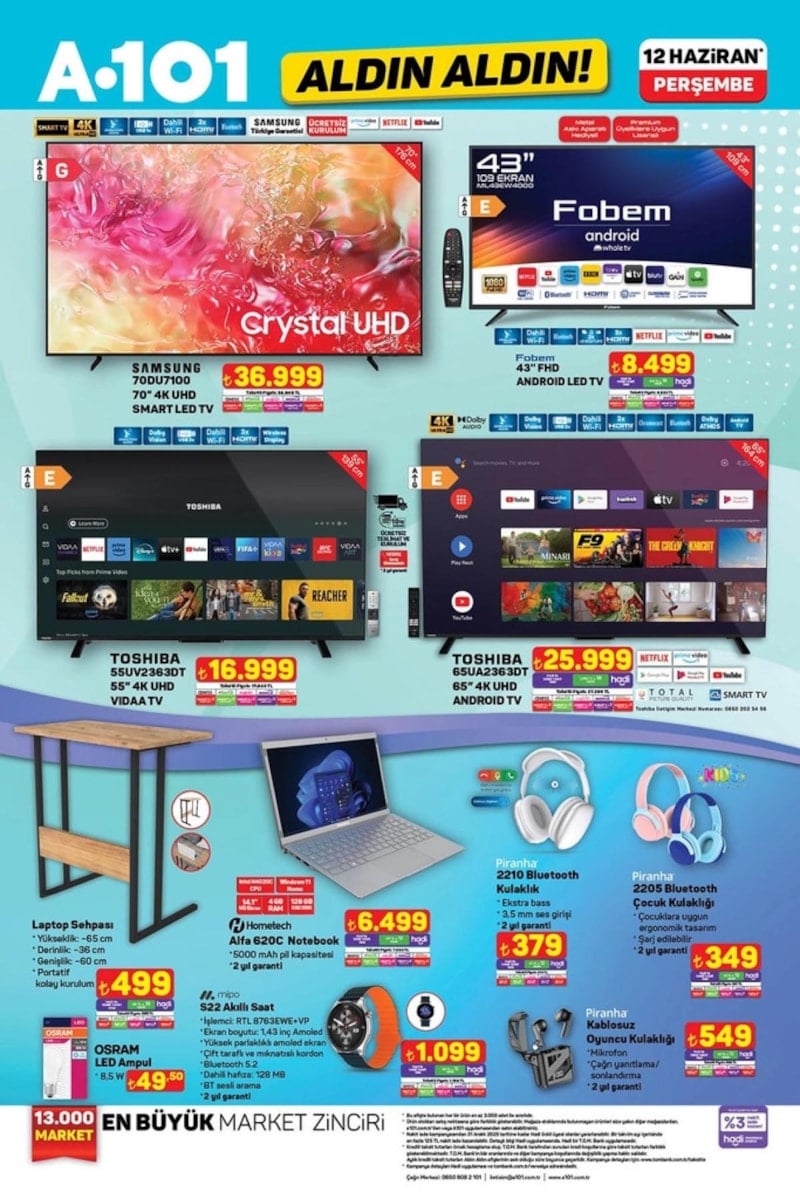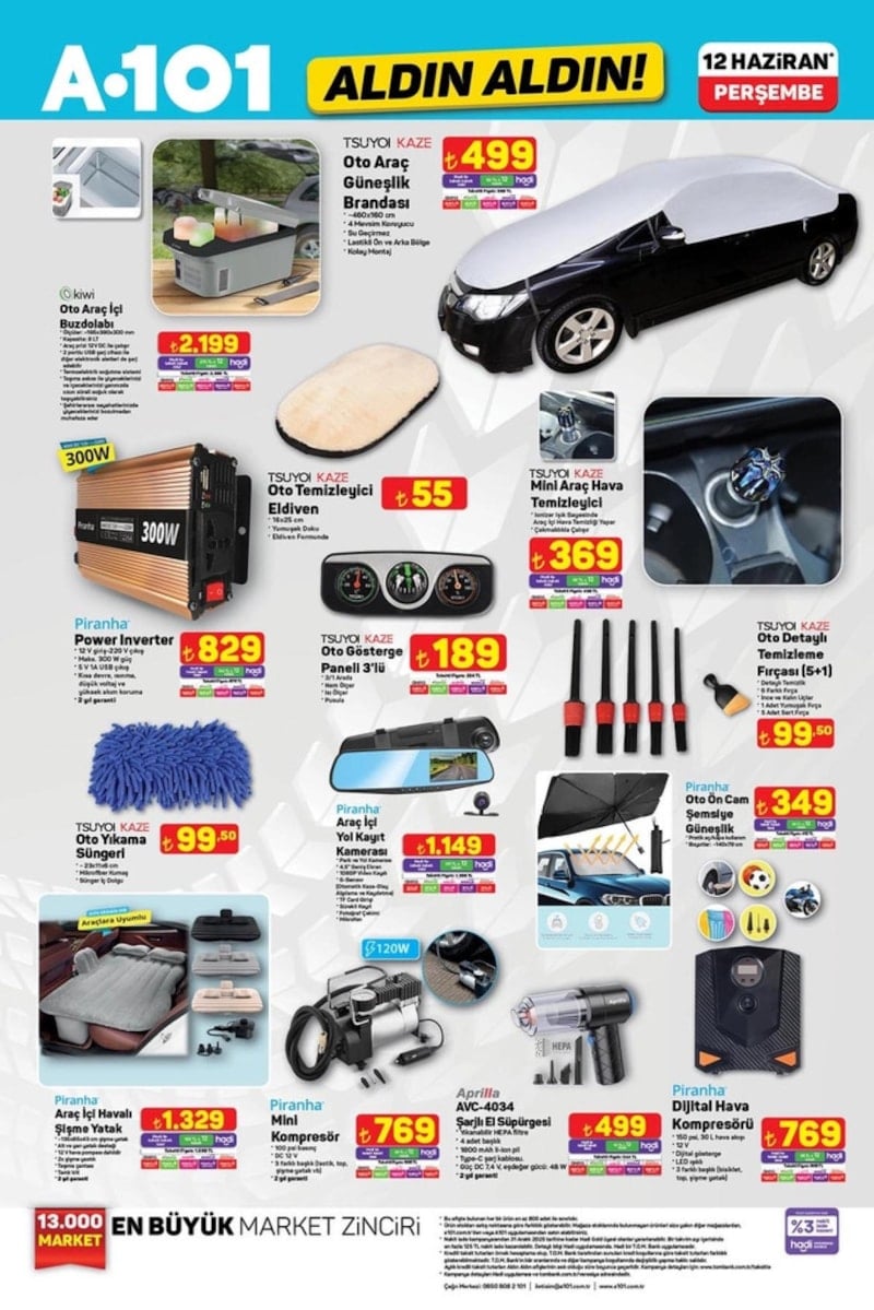 A101, 12 Haziran 2025 tarihli aktüel ürünler kataloğunu yayımladı. Bu hafta otomobil sahiplerini sevindirecek fırsatlar dikkat çekiyor. İşte A101 12 Haziran indirim kataloğu...