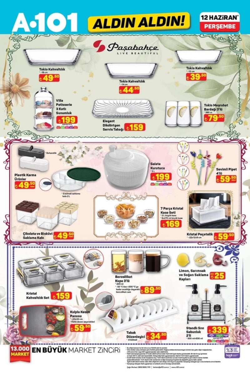 A101 marketleri, 12 Haziran 2025 Perşembe günü itibarıyla geçerli olacak yeni aktüel ürün kataloğunu duyurdu.