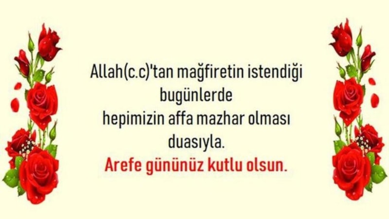 "Dualarınızın kabul olduğu, gönüllerinizin huzurla dolduğu, sağlık ve mutluluğun eksik olmadığı bir Arefe günü diliyorum."