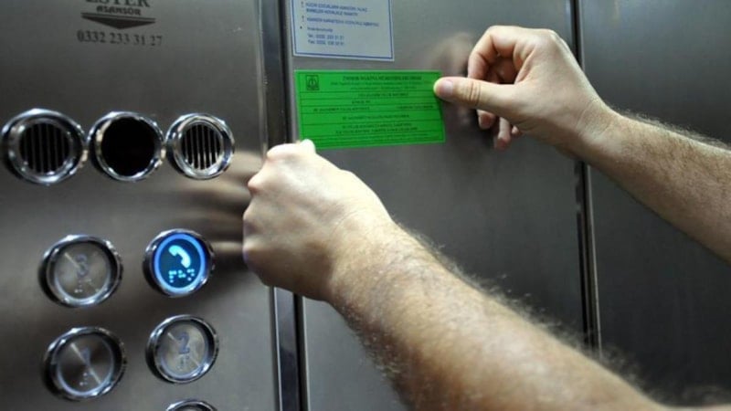 Binalarda güvenli kullanım açısından büyük önem taşıyan asansörler, belirli aralıklarla kontrolden geçirilerek etiketlerle sınıflandırılır.