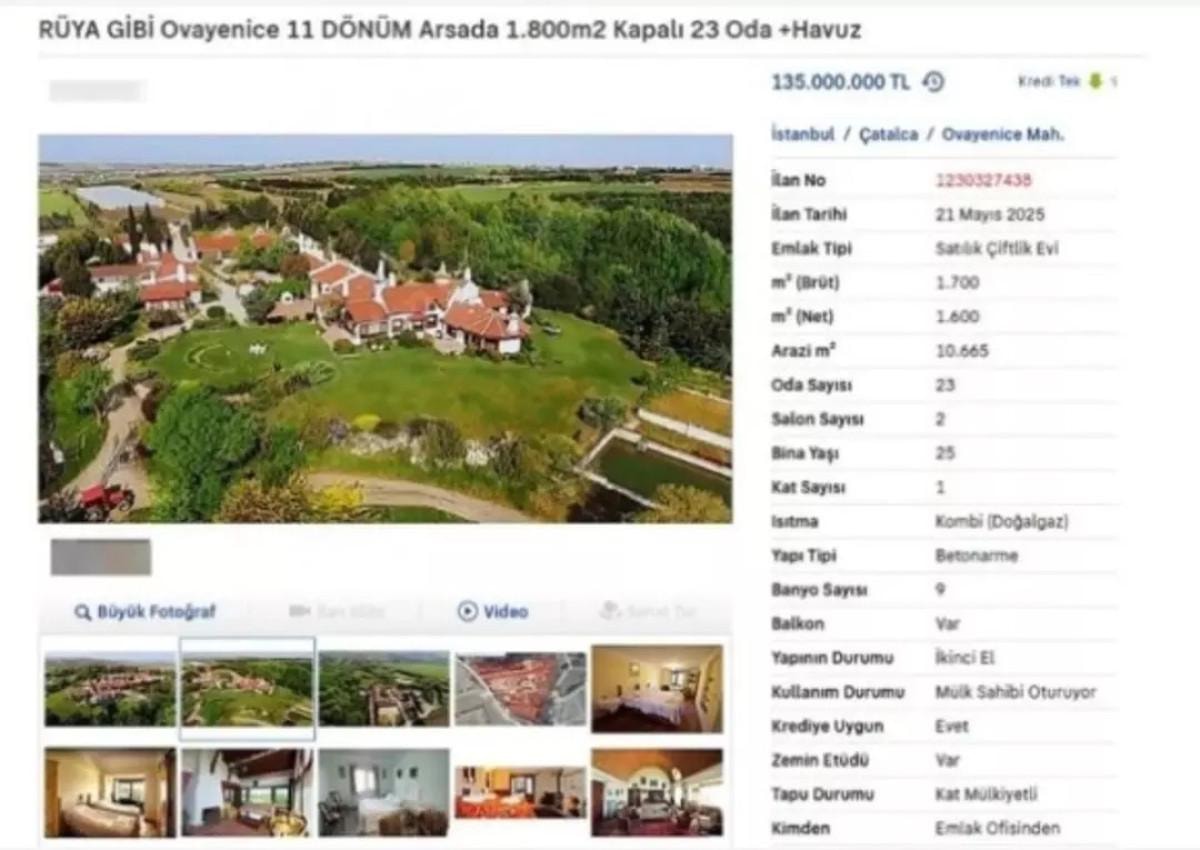 Çatalca’da yer alan ve 2000 yılında inşa edilen çiftlik evi, 135 milyon TL’lik fiyat etiketiyle alıcılarını bekliyor.