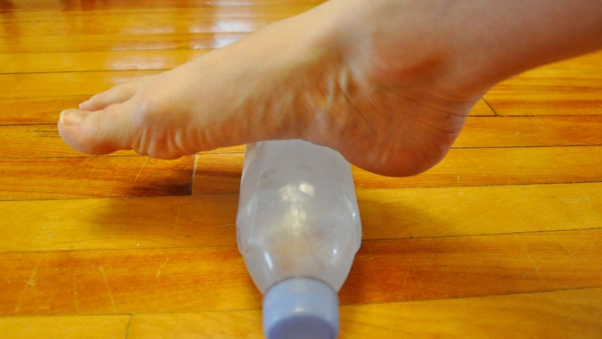 Ayağınızın altına cam şişeyi koyun ve ileri geri hareket ettirin.