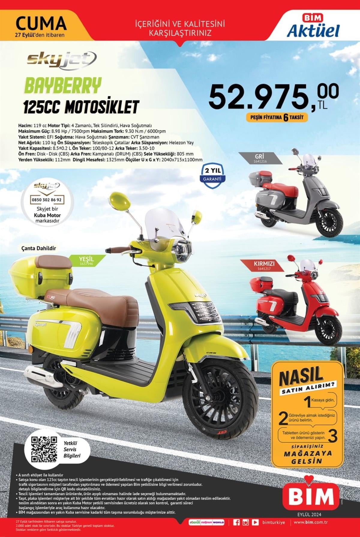 BİM'in yeni haftadaki afişinde, Vespa muadili motosiklet modeli yer aldı.