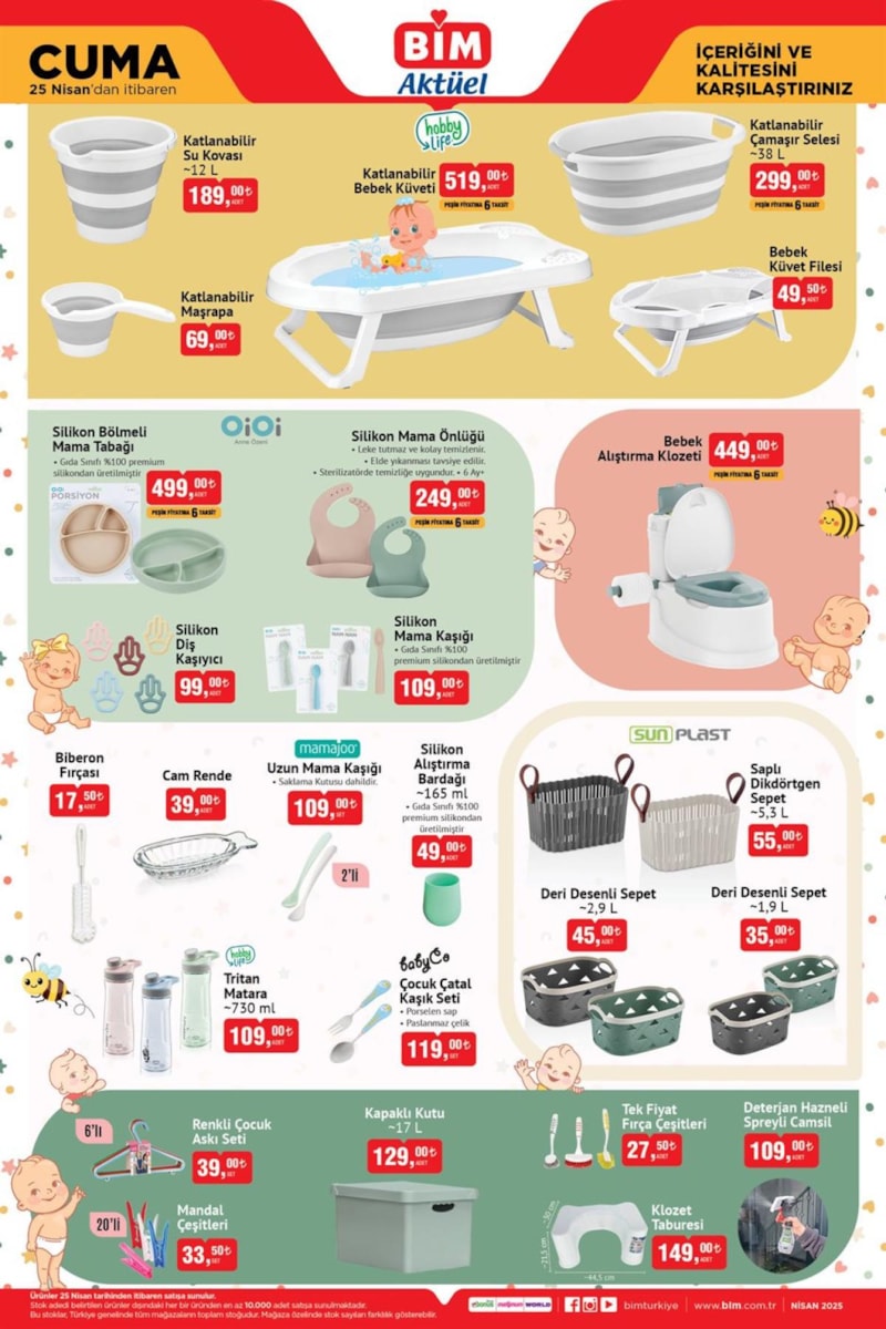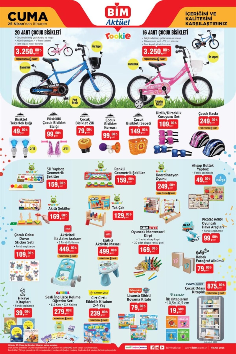 BİM, 25 Nisan 2025 Perşembe günü için hazırladığı aktüel ürünler kataloğunu yayınladı. Teknolojiden bebek bakım ürünlerine, motosikletlerden bisikletlere birçok ürün raflarda yer alacak. İşte BİM 25 Nisan Aktüel Katalog...