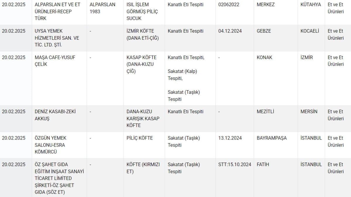 Bakanlık tarafından yapılan açıklamada, bazı markaların et ve et ürünlerinde yasaklı ya da aldatıcı içerikler kullandığı tespit edildi.