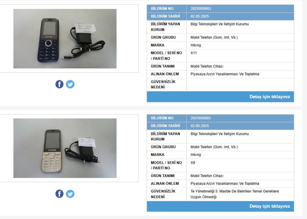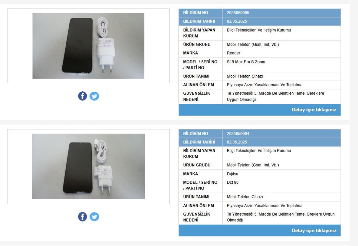Yönetmeliğe uyumsuzluk gerekçesiyle bu cihazlar “güvensiz ürün” kategorisinde değerlendirildi.