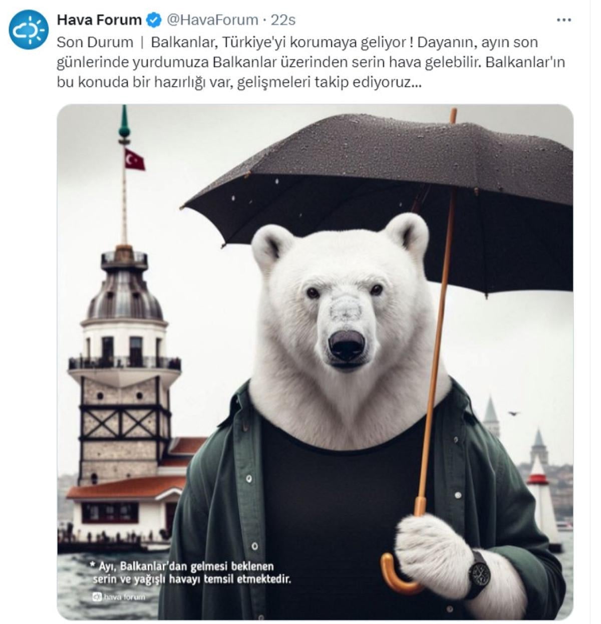 "Balkanlar, Türkiye'yi korumaya geliyor ! Dayanın, ayın son günlerinde yurdumuza Balkanlar üzerinden serin hava gelebilir. Balkanlar'ın bu konuda bir hazırlığı var" ifadeleri kullanılan paylaşım, serin havaların yakın olduğunu işaret etti.