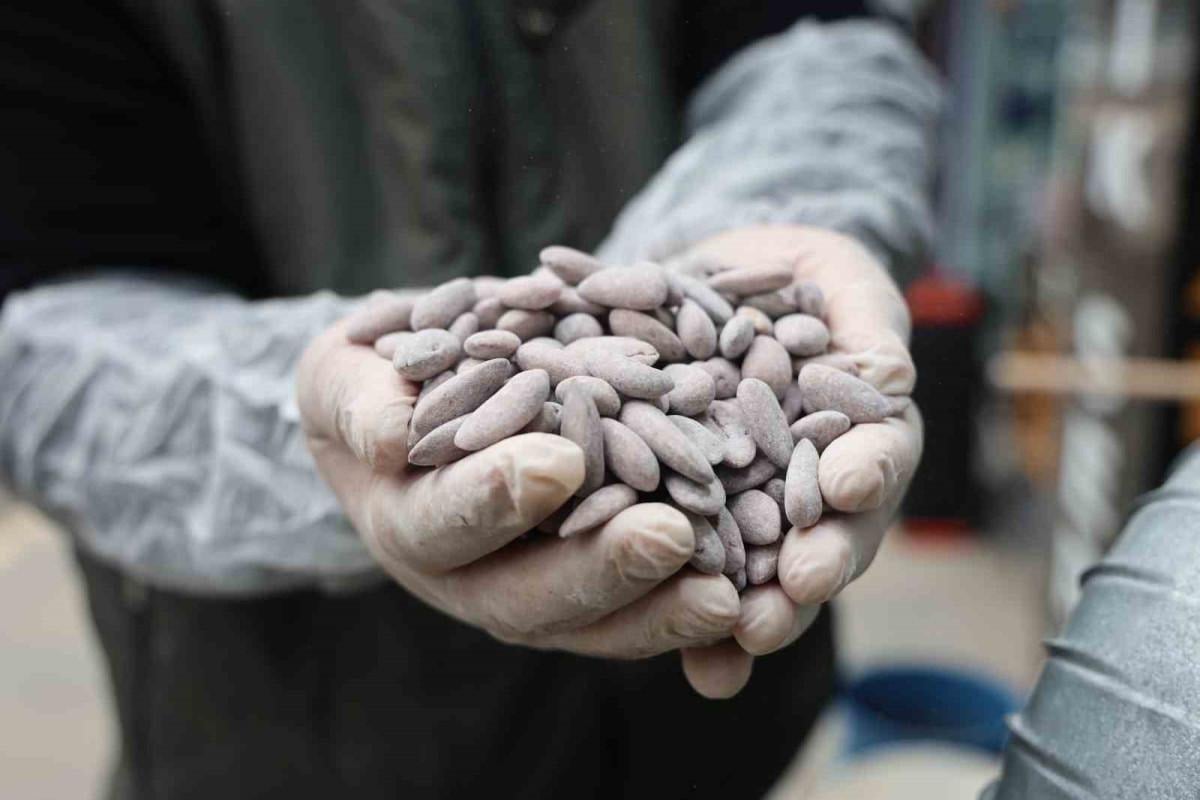 Yapılışında, doğal pancar şekeri ve Elazığ’ın yerli bademin kullanıldığı badem şekeri, yaklaşık 3 saat süren çalışmanın ardından titizlikle paketlenerek satışa hazır hale getiriliyor.