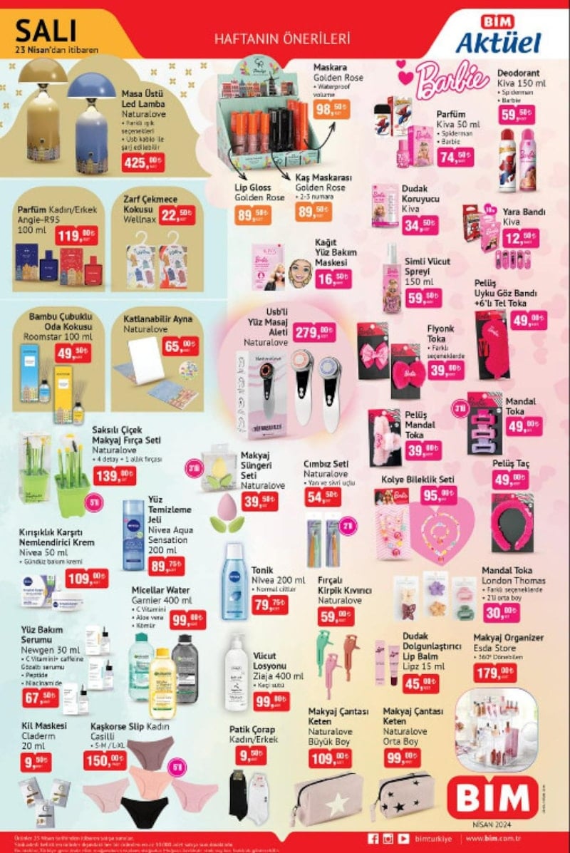 Bununla birlikte, BİM'in indirimli ürünleri arasında masa üstü led lamba, kozmetik ürünleri, temizlik ürünleri yer alıyor.