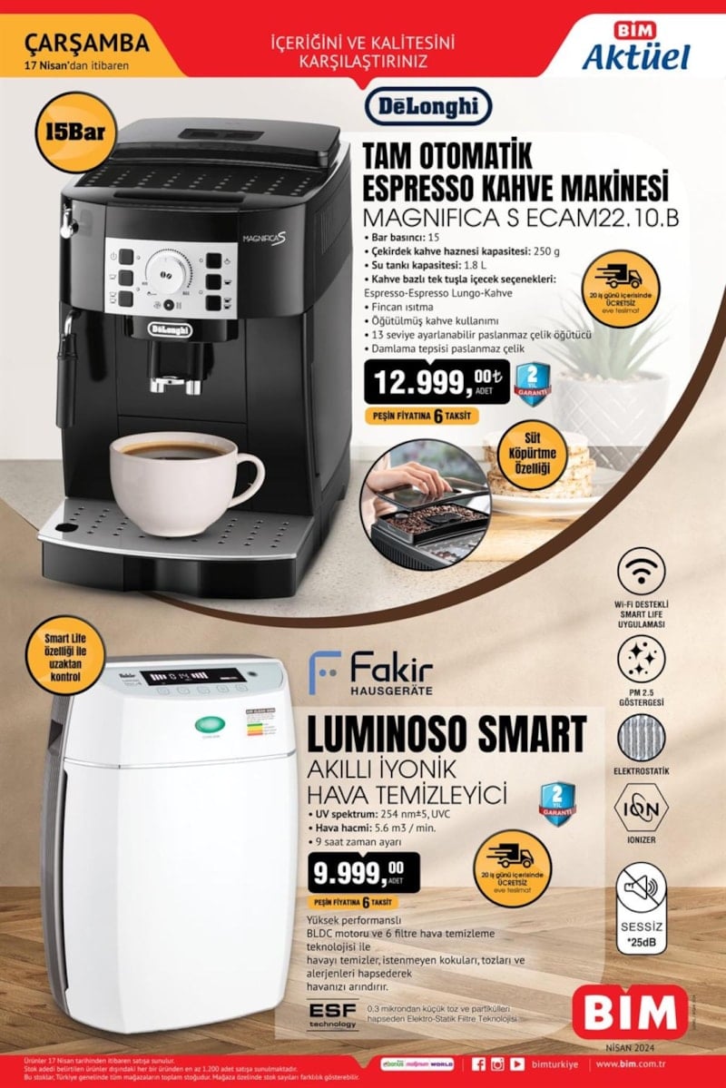 17 Nisan'dan itibaren satışa sunulan Delonghi tam otomatik kahve makinesi, 12 bin 999 TL fiyatıyla dikkat çekti.