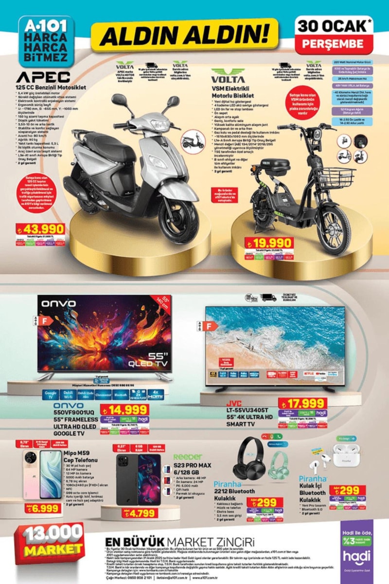 Ocak ayı boyunca tüketicilere cazip indirimler sunan A101, 30 Ocak 2025 Perşembe gününe özel aktüel kataloğunu yayınladı. Yeni katalogda her bütçeye uygun ürünler yer alıyor. İşte A101 30 Ocak indirim kataloğu...