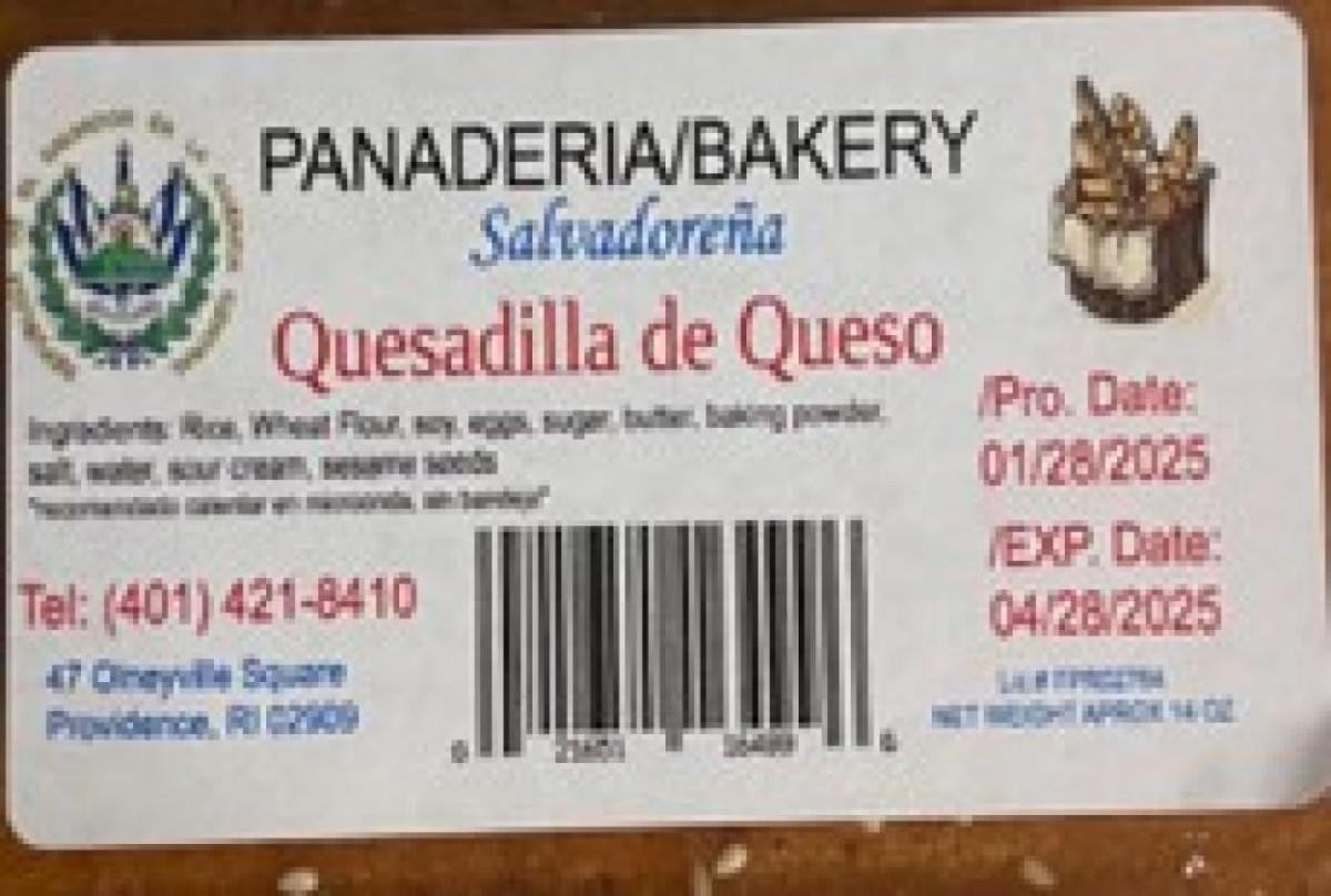 Panaderia Salvadorena Inc., süt içermemesi gereken 14 onsluk Quesadilla de Queso ekmek paketlerini geri çağırıyor.