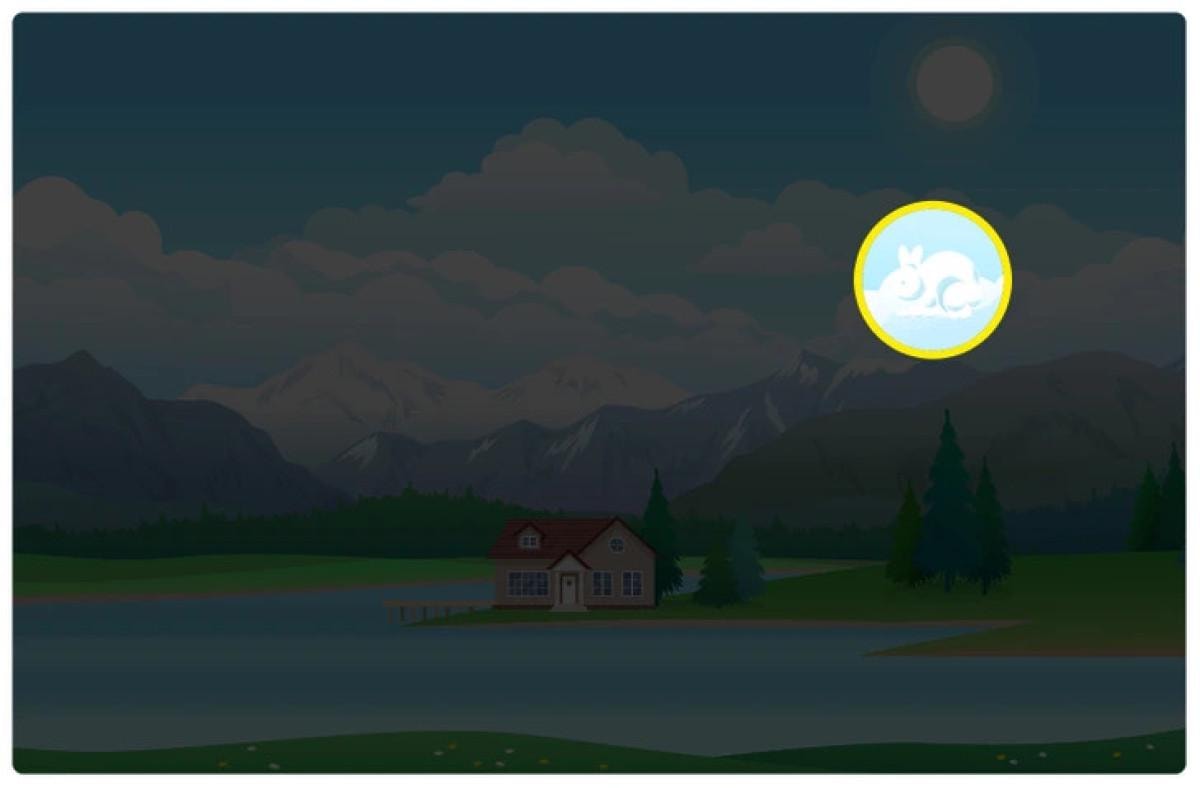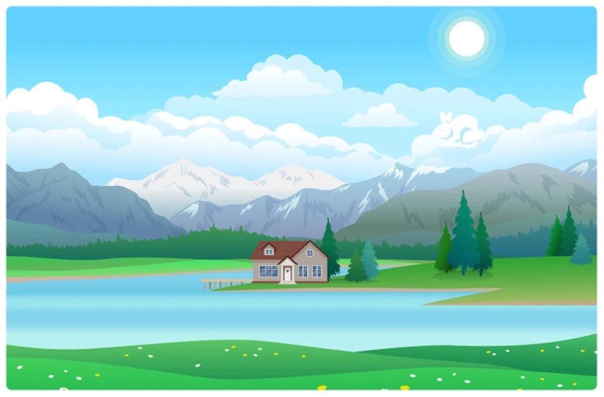 İlk bakışta, görsel normal görünüyor, çünkü görselde, sahne boyunca uzanan sakin mavi bir göl veya nehir, küçük sarı ve beyaz kır çiçeklerinin açtığı yeşil bir çayır ve suya yakın, ahşap bir iskelesi göle doğru uzanan kırmızı çatılı ve beyaz pencereli şirin bir ev var. Ancak burada, bu sahnede, zeki bir tavşan da var ve bu optik illüzyonda bir yerlerde zıplıyor.