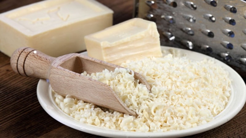 El sabununu bir rende yardımıyla rendeleyin. Ardından bir file veya ince tülbentin içine koyun. Top haline getirerek tepesine de lastik geçirin.