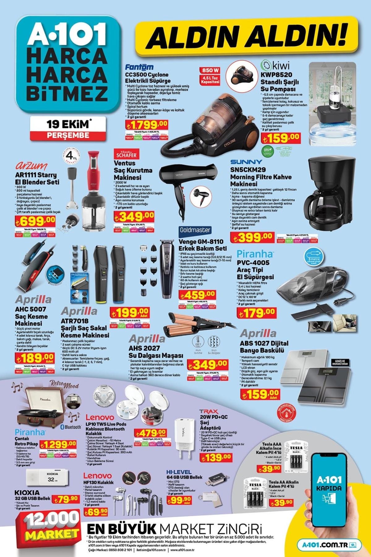 Mutfak eşyalarından elektronik ürünlere kadar geniş bir ürün yelpazesi ile 19 Ekim'de başlayacak olan A101 indirim kataloğu, birçok kişinin beklediği fırsatları sunuyor.