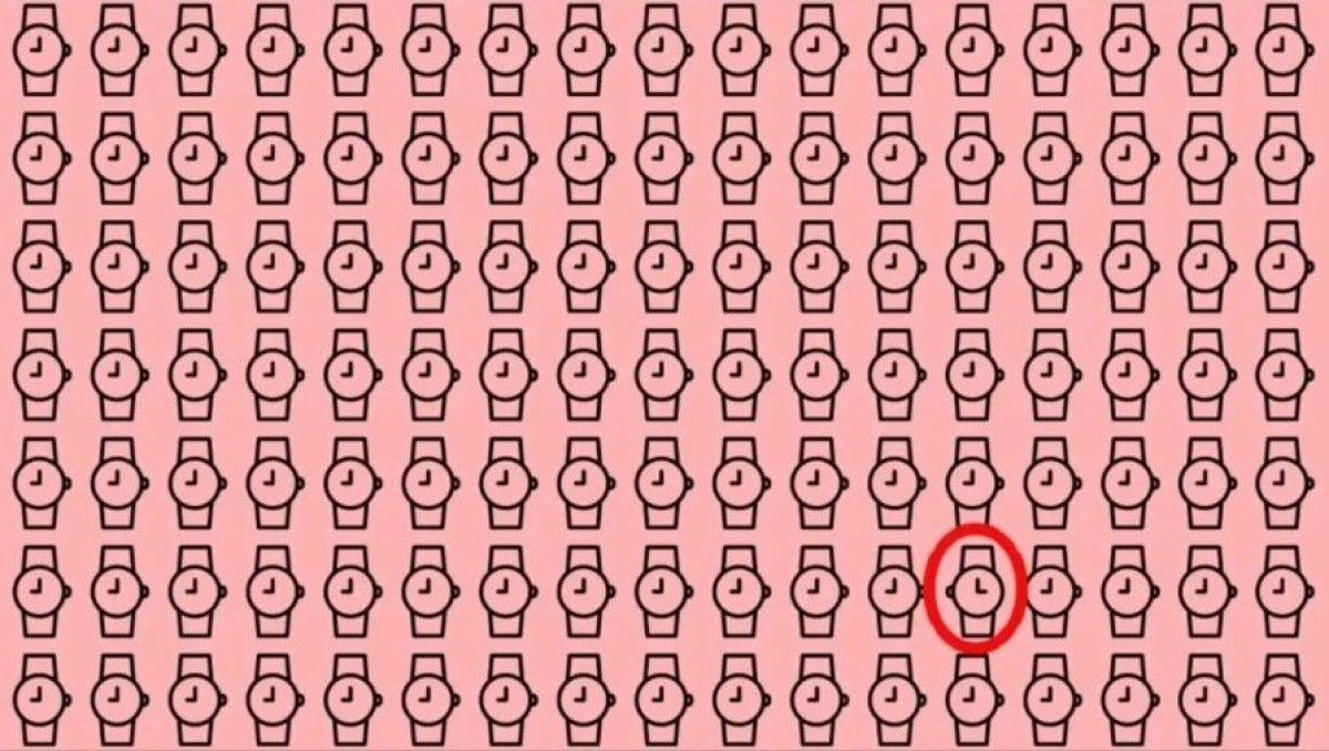 Resimdeki farklı olan saati 7 saniye içinde bulabildiyseniz tebrikler sizde dahi sınıfındasınız. Birbirinin aynısı olan bu saatlerin arasından farklı olanı bulma becerinizde IQ’nuzun yüksek olduğunu bir kere daha kanıtladınız.