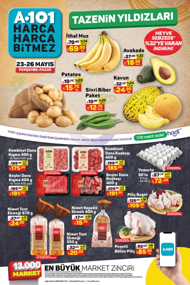 A101, 25 Mayıs - 31 Mayıs 2024 tarihleri arasında geçerli olacak indirimli ürünler listesini duyurdu.