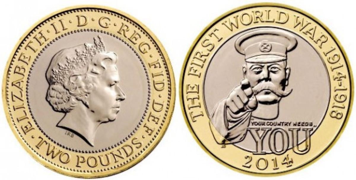 2014 yılında basılan ve Birinci Dünya Savaşı’nın başlangıcını anmak için üretilen Lord Kitchener tasarımlı paranın ön yüzündeki “Two Pounds” ifadesi eksik olan nadir versiyonlar açık artırmalarda 1.000 £’a kadar alıcı buluyor!