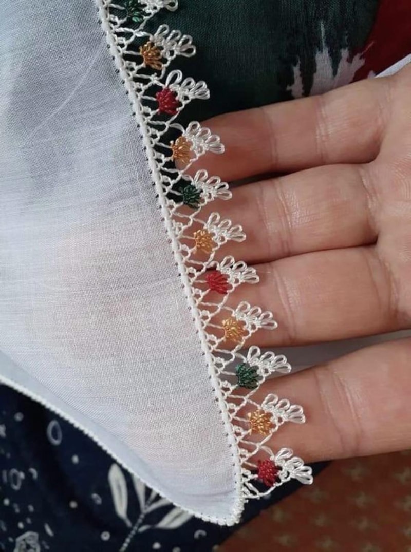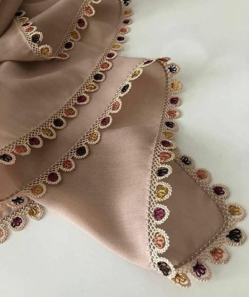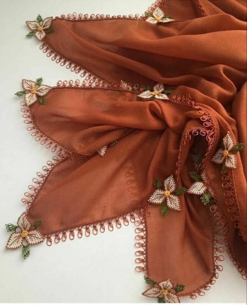 Eli yatkın olanlar, eşarp ve tülbentlerinin kenarına iğne oyası yapar.